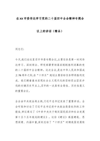 / 在XX市委传达学习党的二十届四中全会精神专题会议上的讲话(精品)