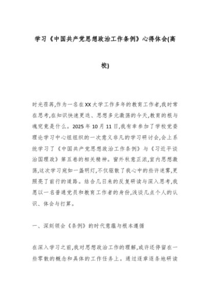 / 学习《中国共产党思想政治工作条例》心得体会(高校)