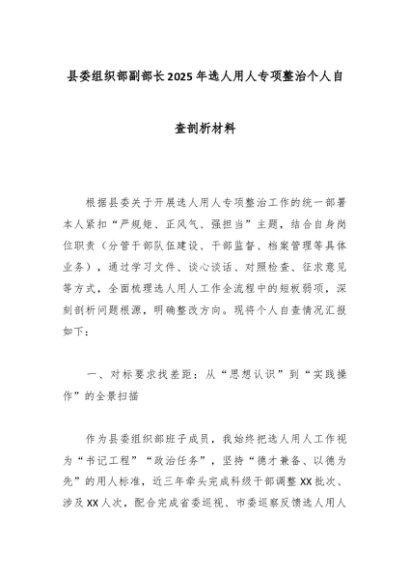 / 县委组织部副部长2025年选人用人专项整治个人自查剖析材料