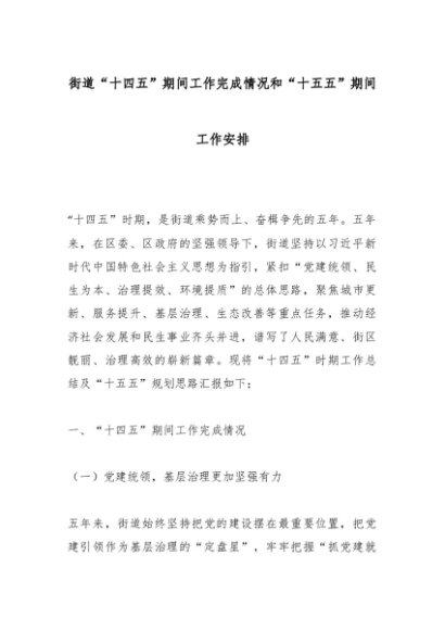 / 街道“十四五”期间工作完成情况和“十五五”期间工作安排