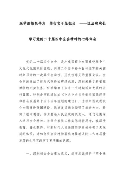 深学细悟聚伟力 笃行实干显担当 ——区法院院长学习党的二十届四中全会精神的心得体会