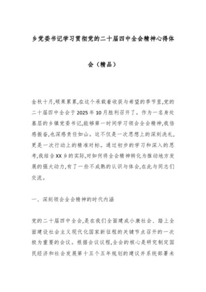 / 乡党委书记学习贯彻党的二十届四中全会精神心得体会(精品)