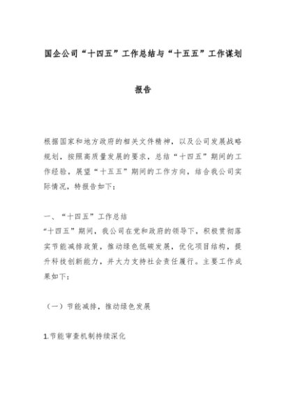 / 国企公司“十四五”工作总结与“十五五”工作谋划报告