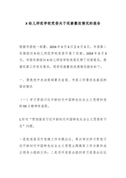 / X幼儿师范学校党委关于巡察整改情况的报告