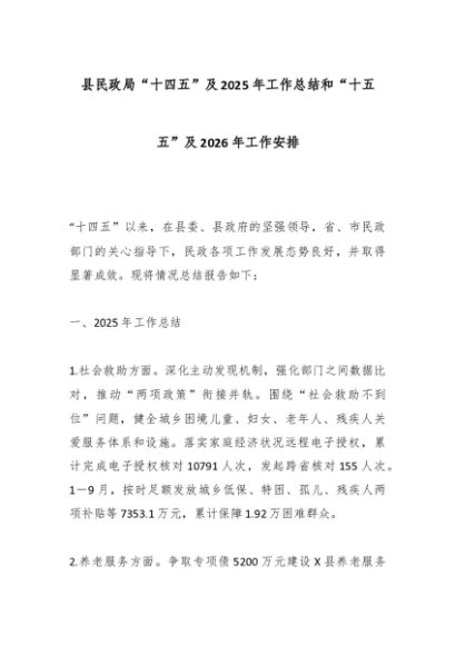 / 县民政局“十四五”及2025年工作总结和“十五五”及2026年工作安排