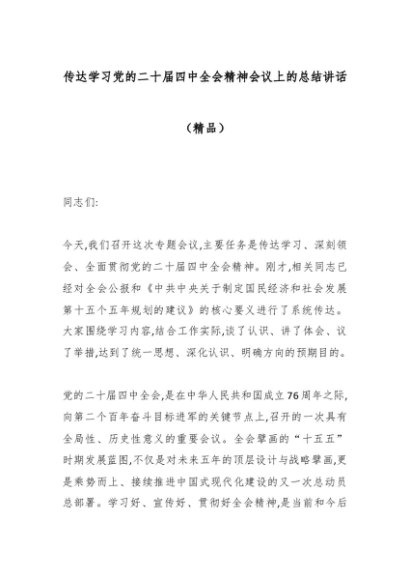/ 传达学习党的二十届四中全会精神会议上的总结讲话(精品)