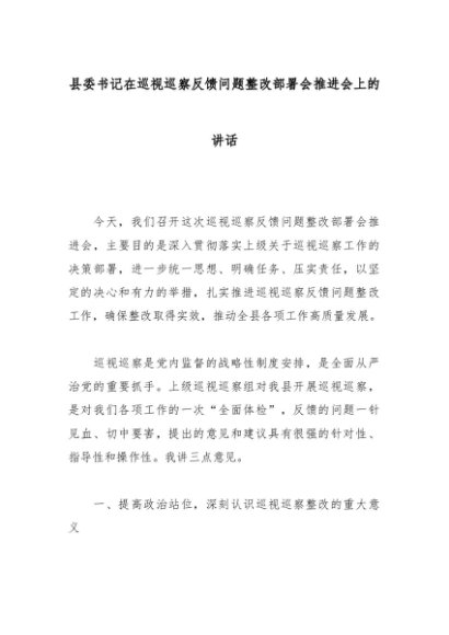 / 县委书记在巡视巡察反馈问题整改部署会推进会上的讲话