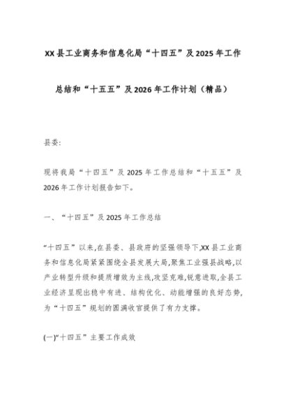 / XX县工业商务和信息化局“十四五”及2025年工作总结和“十五五”及2026年工作计划(精品)