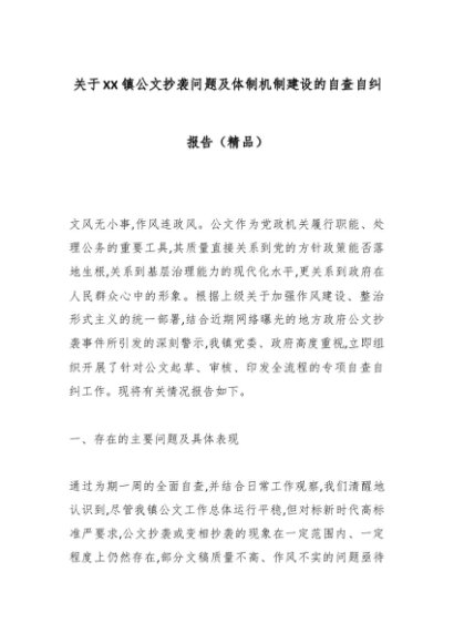 关于XX镇公文抄袭问题及体制机制建设的自查自纠报告(精品)