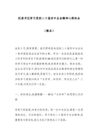 / 纪委书记学习党的二十届四中全会精神心得体会(精品)
