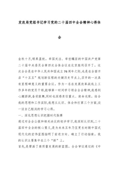/ 发改局党组书记学习党的二十届四中全会精神心得体会