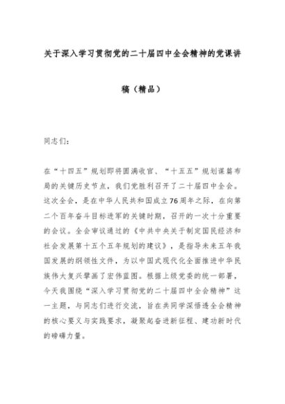 / 关于深入学习贯彻党的二十届四中全会精神的党课讲稿(精品)