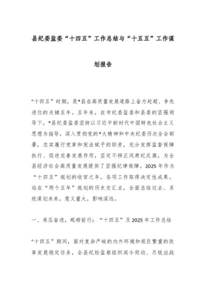 / 县纪委监委“十四五”工作总结与“十五五”工作谋划报告
