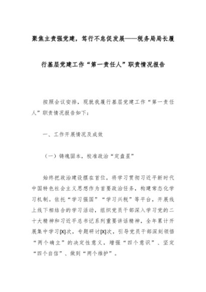 / 聚焦主责强党建,笃行不怠促发展——税务局局长履行基层党建工作“第一责任人”职责情况报告