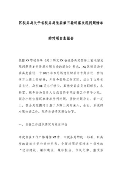 / 区税务局关于省税务局党委第三轮巡察发现问题清单的对照自查报告