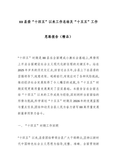 / XX县委“十四五”以来工作总结及“十五五”工作思路报告(精品)