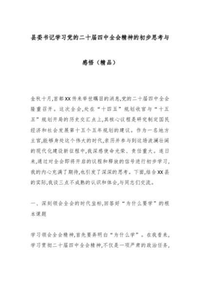 / 县委书记学习党的二十届四中全会精神的初步思考与感悟(精品)
