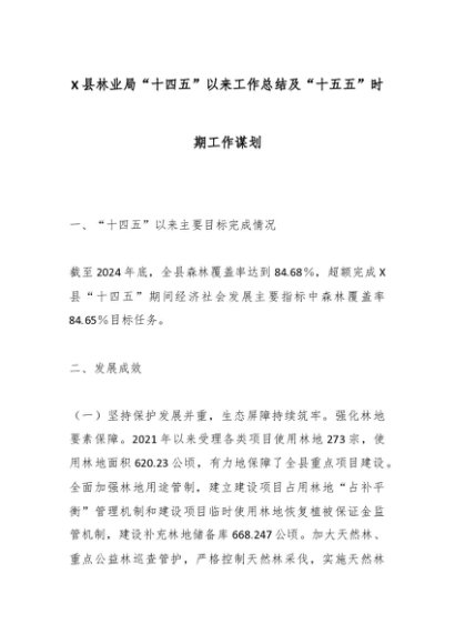 / X县林业局“十四五”以来工作总结及“十五五”时期工作谋划