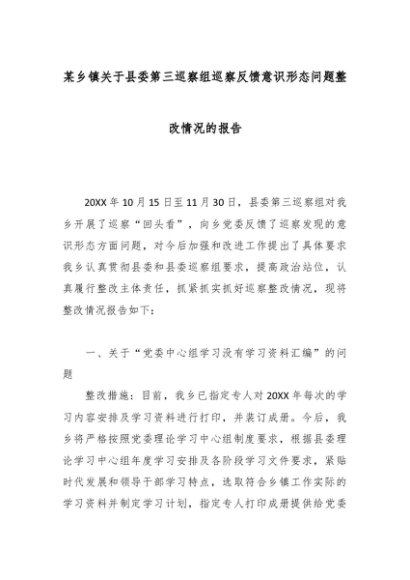 / 某乡镇关于县委第三巡察组巡察反馈意识形态问题整改情况的报告