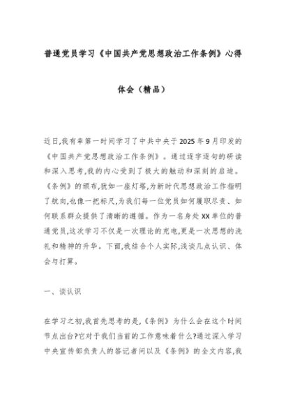 / 普通党员学习《中国共产党思想政治工作条例》心得体会(精品)