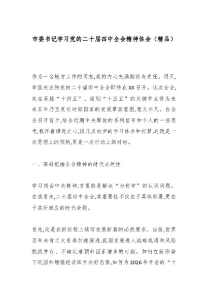 / 市委书记学习党的二十届四中全会精神体会(精品)