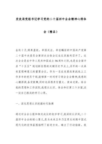 / 发改局党组书记学习党的二十届四中全会精神心得体会(精品)