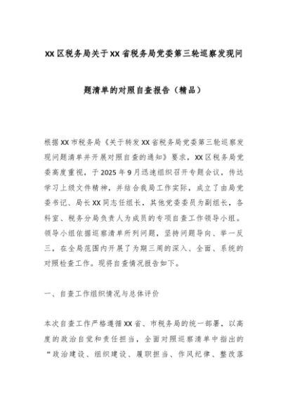 / XX区税务局关于XX省税务局党委第三轮巡察发现问题清单的对照自查报告(精品)