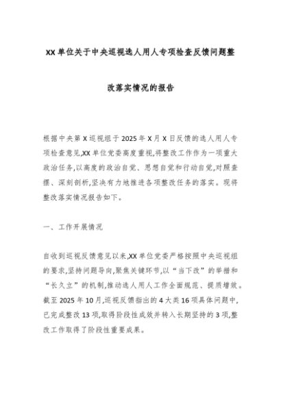 / XX单位关于中央巡视选人用人专项检查反馈问题整改落实情况的报告