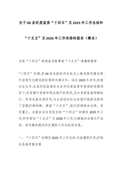 / 关于XX县纪委监委“十四五”及2025年工作总结和“十五五”及2026年工作安排的报告(精品)