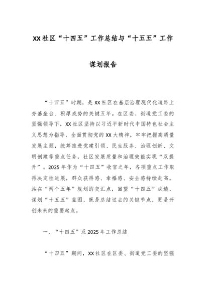/ XX社区“十四五”工作总结与“十五五”工作谋划报告