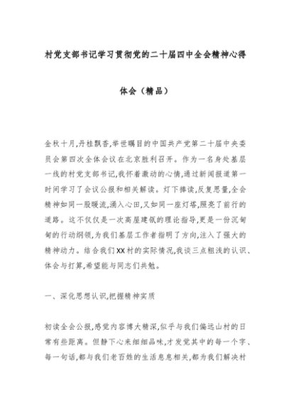 / 村党支部书记学习贯彻党的二十届四中全会精神心得体会(精品)