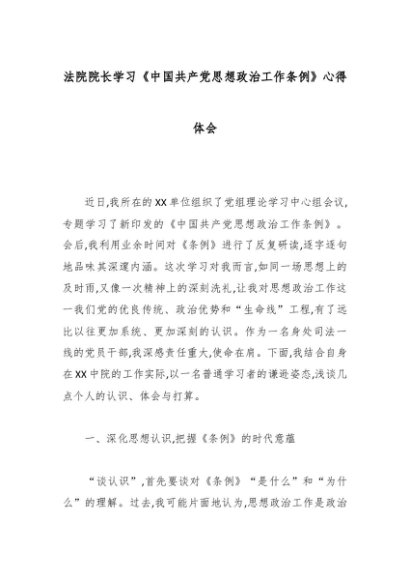 / 法院院长学习《中国共产党思想政治工作条例》心得体会
