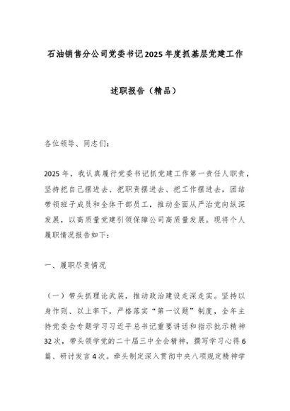 / 石油销售分公司党委书记2025年度抓基层党建工作述职报告(精品)