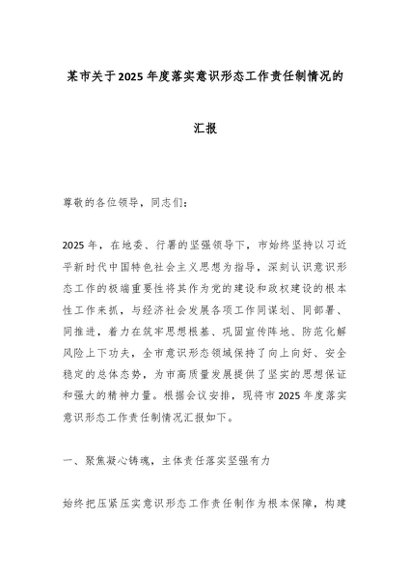 / 某市关于2025年度落实意识形态工作责任制情况的汇报