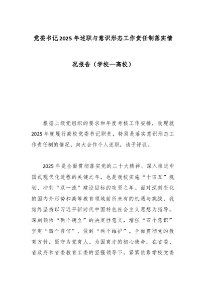 / 党委书记2025年述职与意识形态工作责任制落实情况报告(学校—高校)
