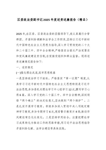 / 区委政法委副书记2025年度述责述廉报告(精品)