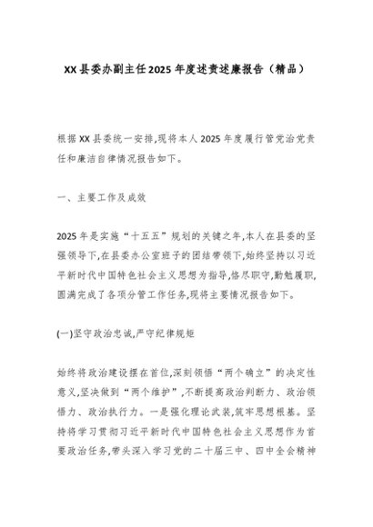 / XX县委办副主任2025年度述责述廉报告(精品)