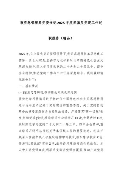/ 市应急管理局党委书记2025年度抓基层党建工作述职报告(精品)