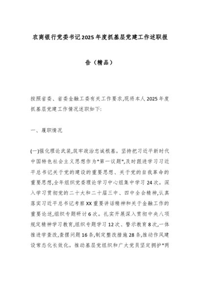 / 农商银行党委书记2025年度抓基层党建工作述职报告(精品)