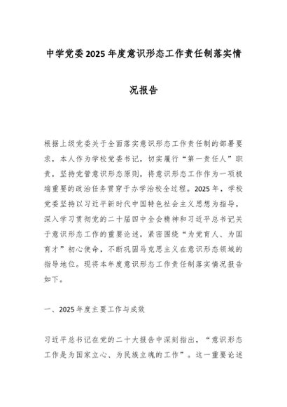 / 中学党委2025年度意识形态工作责任制落实情况报告