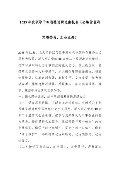 / 2025年度领导干部述德述职述廉报告(公路管理局党委委员、工会主席)
