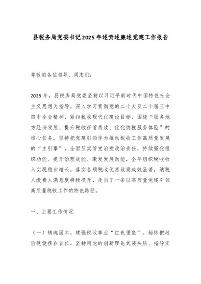 / 县税务局党委书记2025年述责述廉述党建工作报告