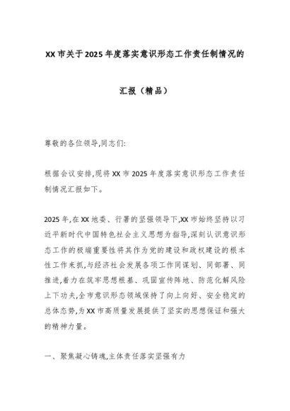 / XX市关于2025年度落实意识形态工作责任制情况的汇报(精品)