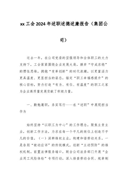 / xx工会2024年述职述德述廉报告(集团公司)