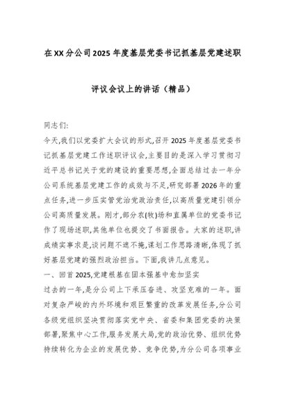 / 在XX分公司2025年度基层党委书记抓基层党建述职评议会议上的讲话(精品)