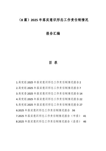 / 2025年落实意识形态工作责任制情况报告汇编(8篇)