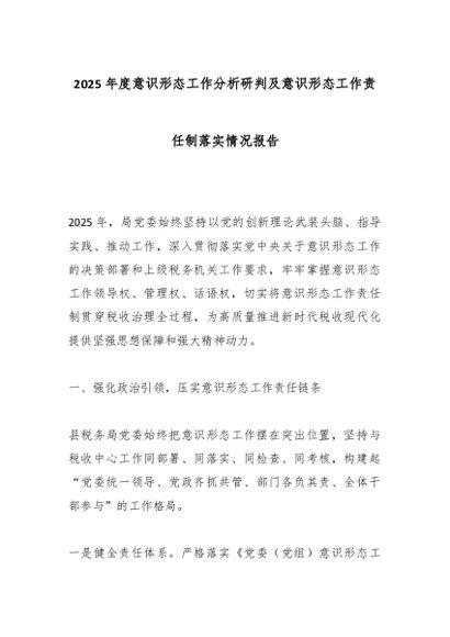 / 2025年度意识形态工作分析研判及意识形态工作责任制落实情况报告