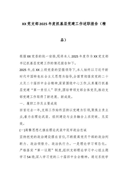/ XX党支部2025年度抓基层党建工作述职报告(精品)