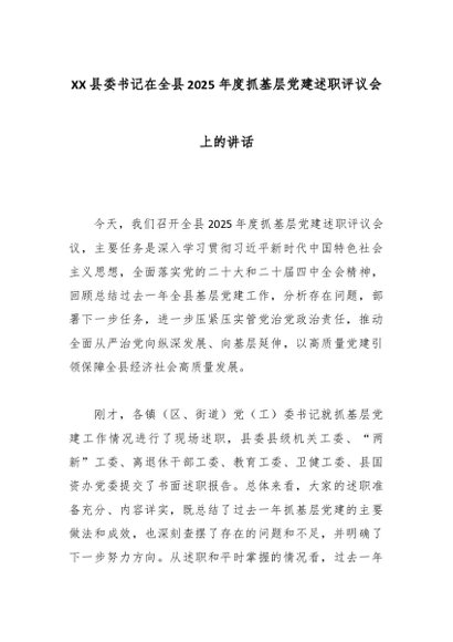/ XX县委书记在全县2025年度抓基层党建述职评议会上的讲话
