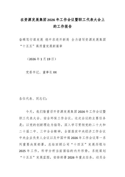 / 在资源发展集团2026年工作会议暨职工代表大会上的工作报告